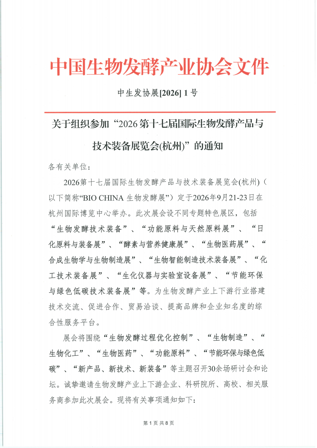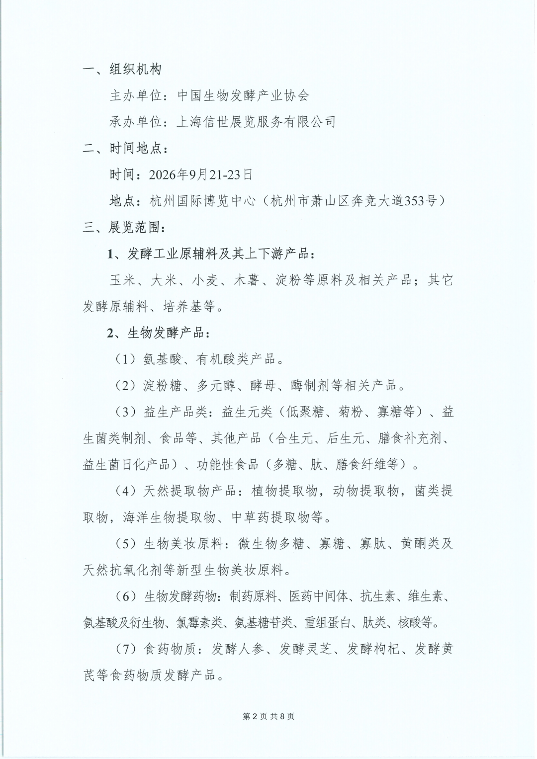 2026第十七届国际生物发酵产品与技术装备展览会(杭州)定于2026年9月21-23日在杭州国际博览中心举办。此次展会设不同专题特色展区,包括“生物发酵技术装备”、“功能原料与天然原料展”、 “日化原料与装备展”、“酵素与营养健康展”、“生物医药展”、“合成生物学与生物制造展”、“生物智能制造技术装备展”、“化工技术装备展”、“生化仪器与实验室设备展”、“节能环保与绿色低碳技术装备展”等。为生物发酵产业上下游行业搭建技术交流、促进合作、贸易洽谈、提高品牌和企业知名度的综合性服务平台。